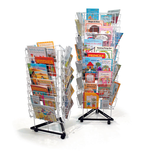 These 3 sided book racks come with 10 rows of storage on each face and are designed to be at an accessible height for children. With easy glide cas...