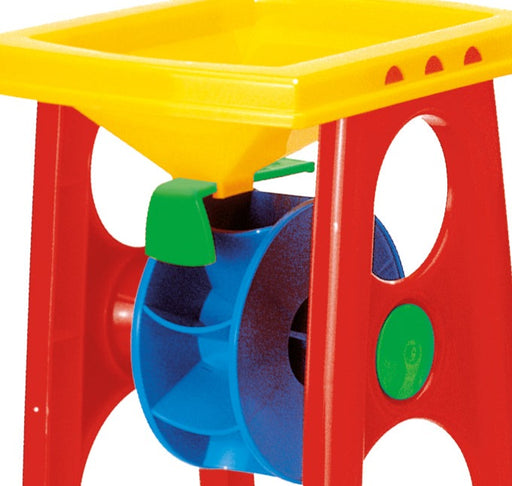 Plain sand mill developing the child’s fine motor skills. The sand or the water is added at the top and, immediately, the wheel starts turning. Di...