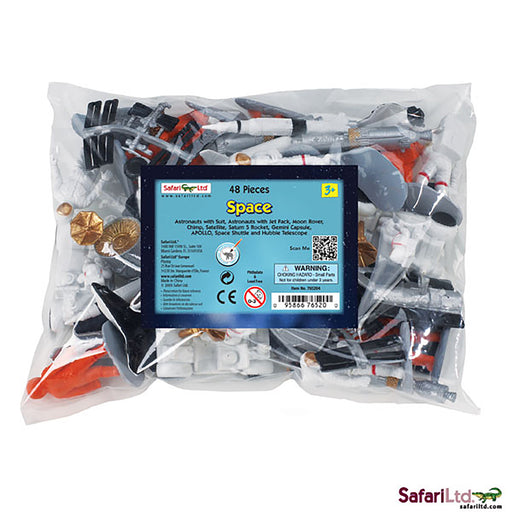 Everything you need to create your own space mission is here with 48 items and 10 unique designs, including two astronauts, Apollo rockets, Saturn...