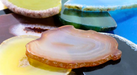 Enjoy beautiful crustal colours with this assorted pack of agate slices. Thin slices allow the light to shine through. Pack of 6 slices.