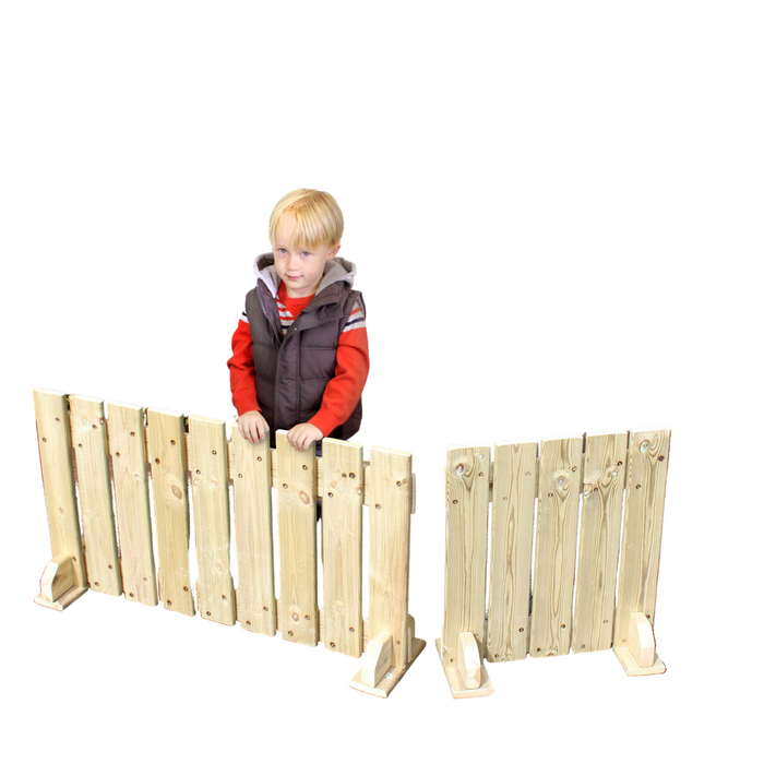 Portable wooden picket fence divider panels are ideal for outdoor learning spaces by helping to create a division of play areas where children can focus and concentrate. Light enough to move around easily and designed at a low height so younger children can watch activities going on around them. Made from Pinewood. Suitable for indoor or outdoor use.