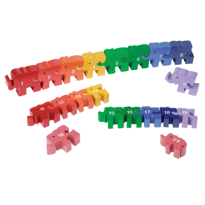 These brightly coloured linking elephants are numbered 1 through to 20 and encourage early sequencing and number skills. The elephants decrease in size from 7 to 4cms high.