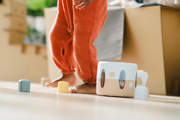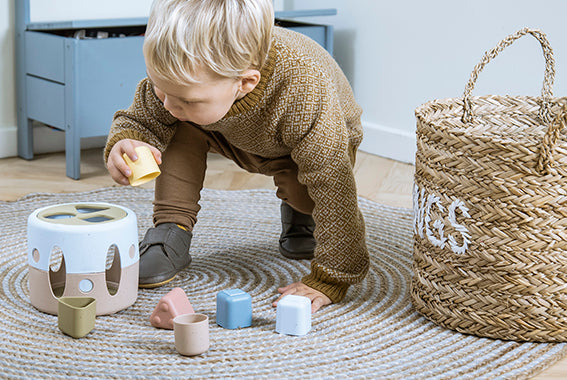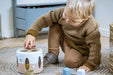 Simple and fun game to learn to recognise different shapes. This shape sorter in nice subdued natural shades stimulates the fine motor skills, hand-eye coordination, and invites play and learning.